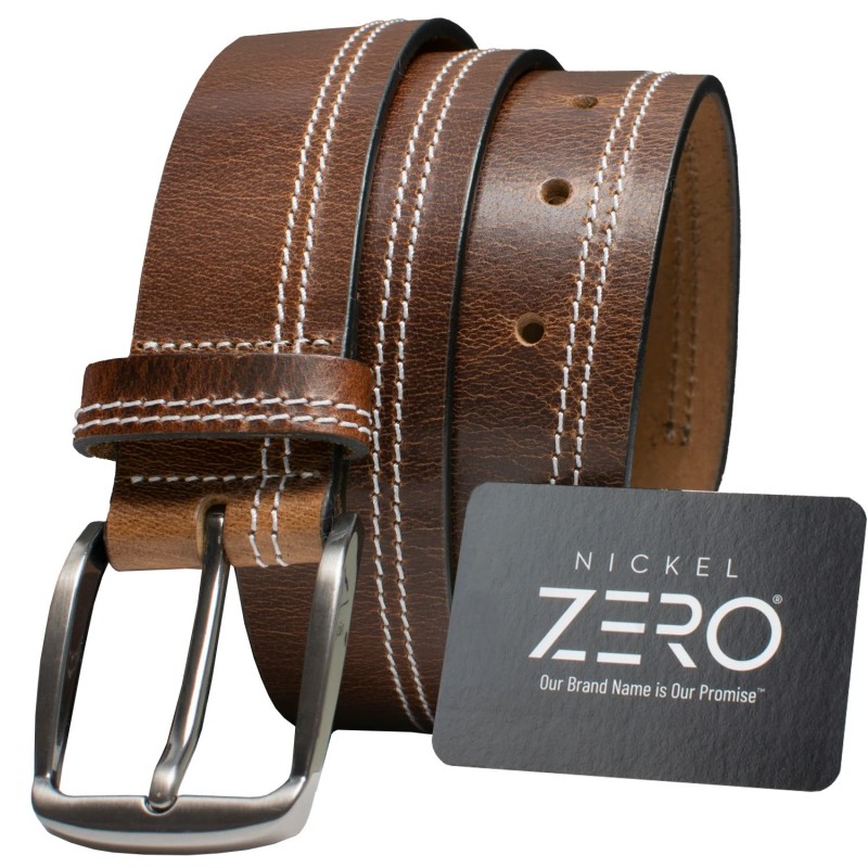 Cinturón de cuero con hebilla anti níquel certificada.