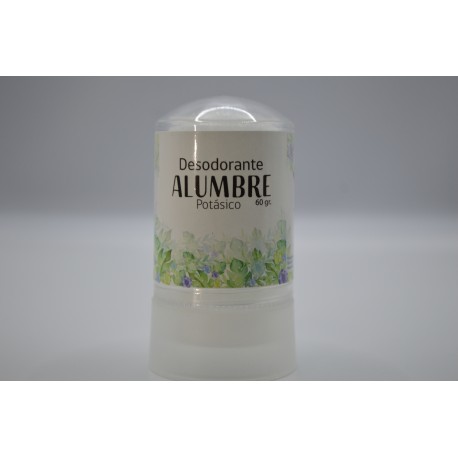 Desodorante natural con alumbre potásico, mineral hipoalergénico, antiséptico, antibacteriano y astringente. Crea una película transparente que evita los malos olores y la formación de bacterias.